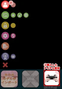 ②購入したアイテム素材を選択
