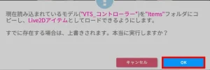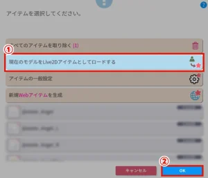 ①「現在のモデルをLive2Dアイテムとしてロードする」を選択