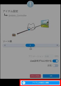 Live2Dアイテムの「キーバインド設定」や「アイテム化」を済ませておきます。