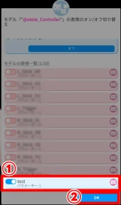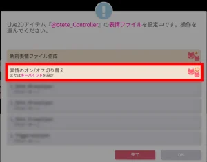 ①STEP3で設定した「表情ファイル」のトグルをON(青色)にする(※)