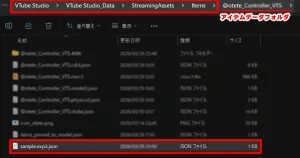 ①アイテム化したデータが格納されているフォルダを開く