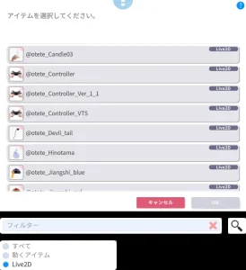 ・「すべて・動くアイテム・Live2D」の中から「Live2D」を選択